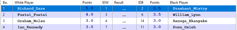 | 12 | Jeremy_Coombe | 2.0 | =W19 | -B2 | +BYE | =BYE | — |