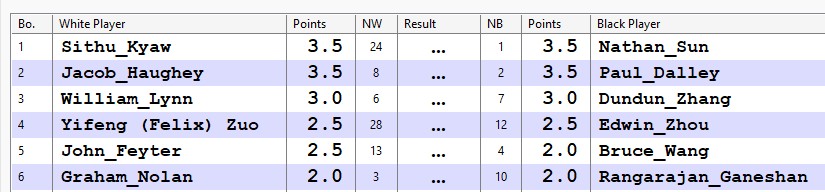 Assuming full attendance next week the top five boards will look like this. Start polishing your openings. (Draw finalized on the night)